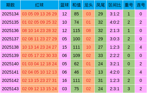 蓝球分析:上期蓝球开出03,近10期大数出现了5期,小数出现了5期。本期一码独蓝推荐:15。
