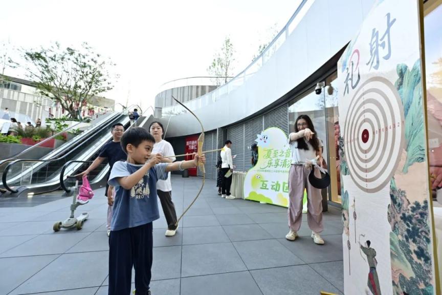 市民们在傍晚观赏演艺表演,参与互动游戏,共同迎接传统节气。